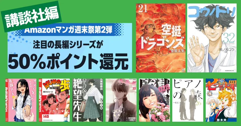 【3/1まで】講談社 Kindleマンガ 全巻50%還元セール《週末祭》|空挺ドラゴンズ/はじめの一歩/コウノドリ/長瀞さん/化物語/さよなら絶望先生